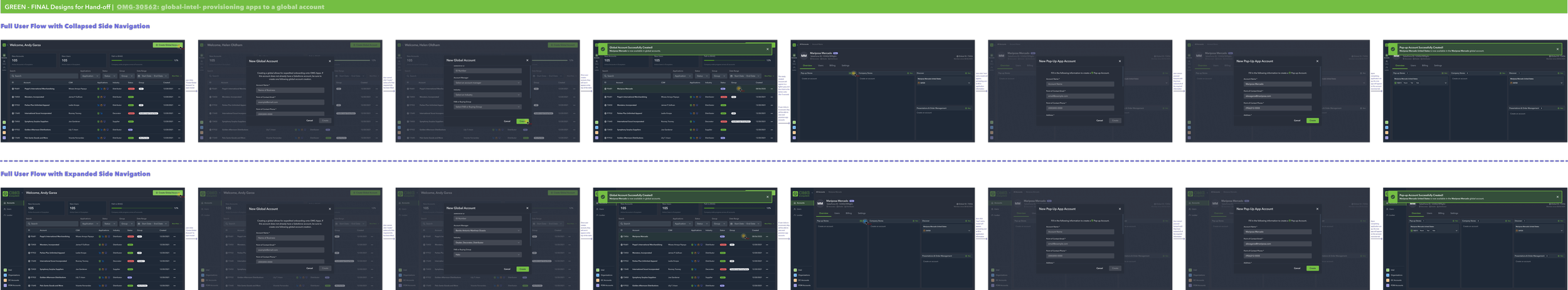 Finally, we rounded out the initiative by working out how users would create and edit app accounts, within a larger global account. Each app required unique information so we took care to ensure the process was clean, efficient, and did not neglect an critical pieces of information.