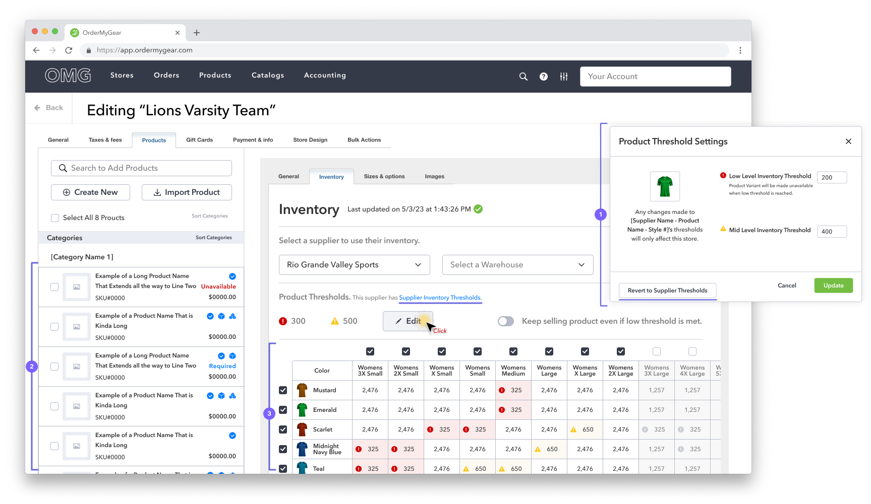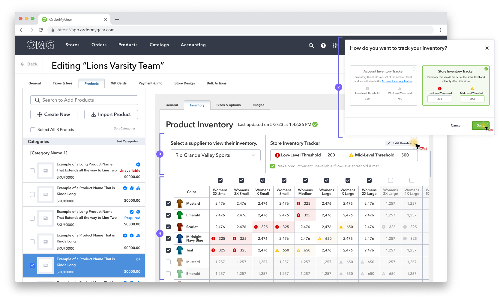 Allowing the user to switch between Supplier Inventory Thresholds and Product Inventory Thresholds was not clearly understood (the modal in the inventory tab exasperated this problem).