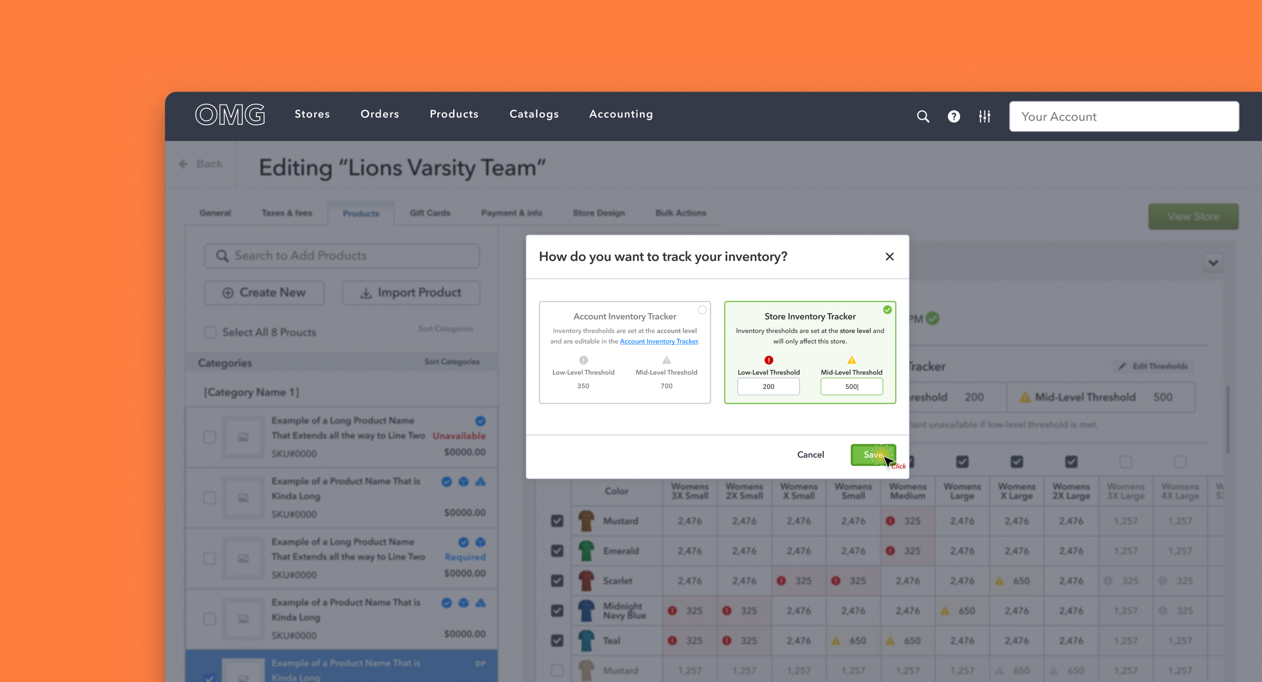 Modal was redesigned to clearly communicate to the user that they had two options for inventory tracking; Store Inventory Tracking or Account Inventory Tracking.