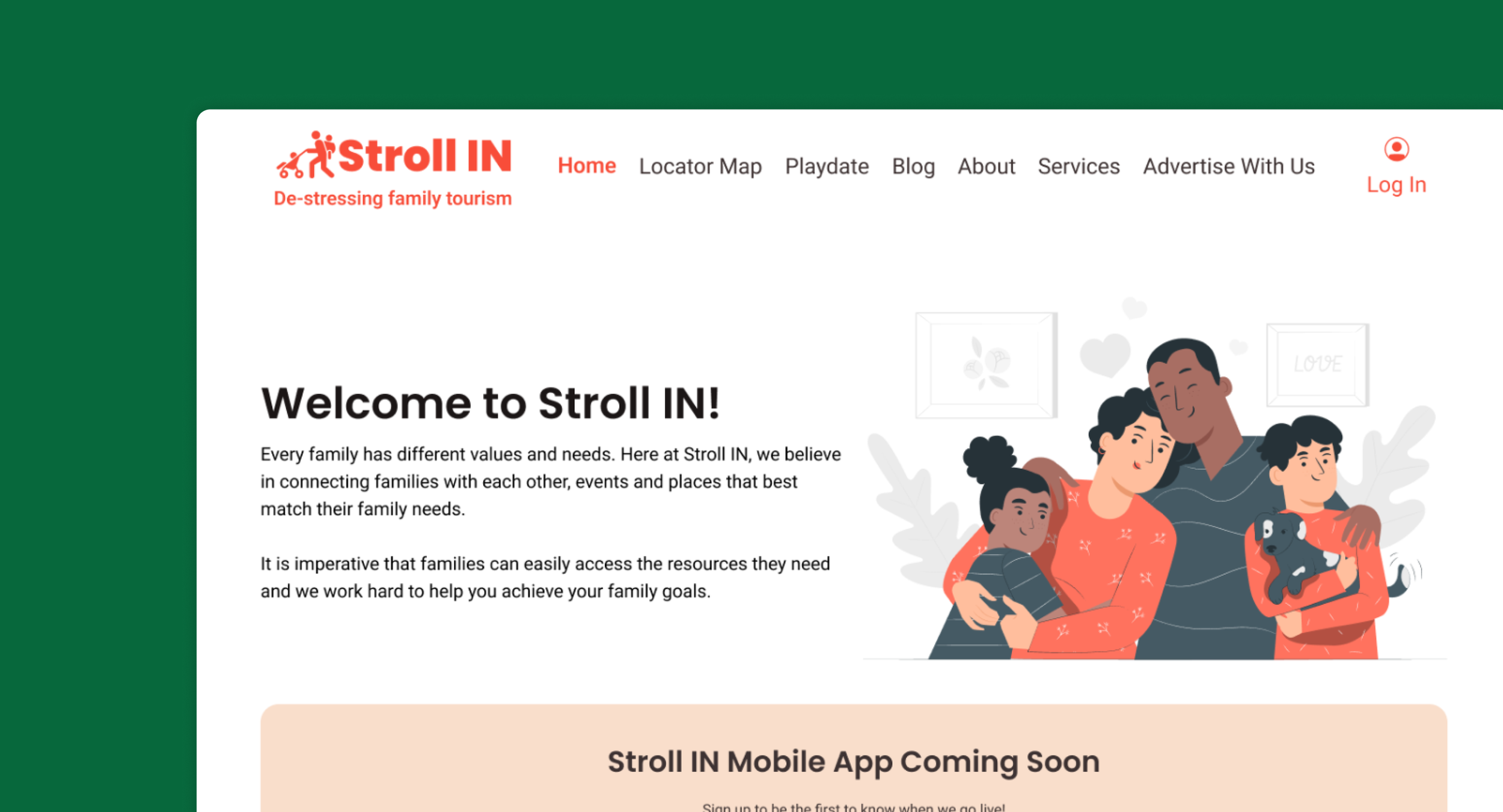 Stroll IN is a platform that aids families in creating connections. The site aims to foster a community that strives to reduce the sources of stress that comes with traveling with children or navigating unfamiliar territory.