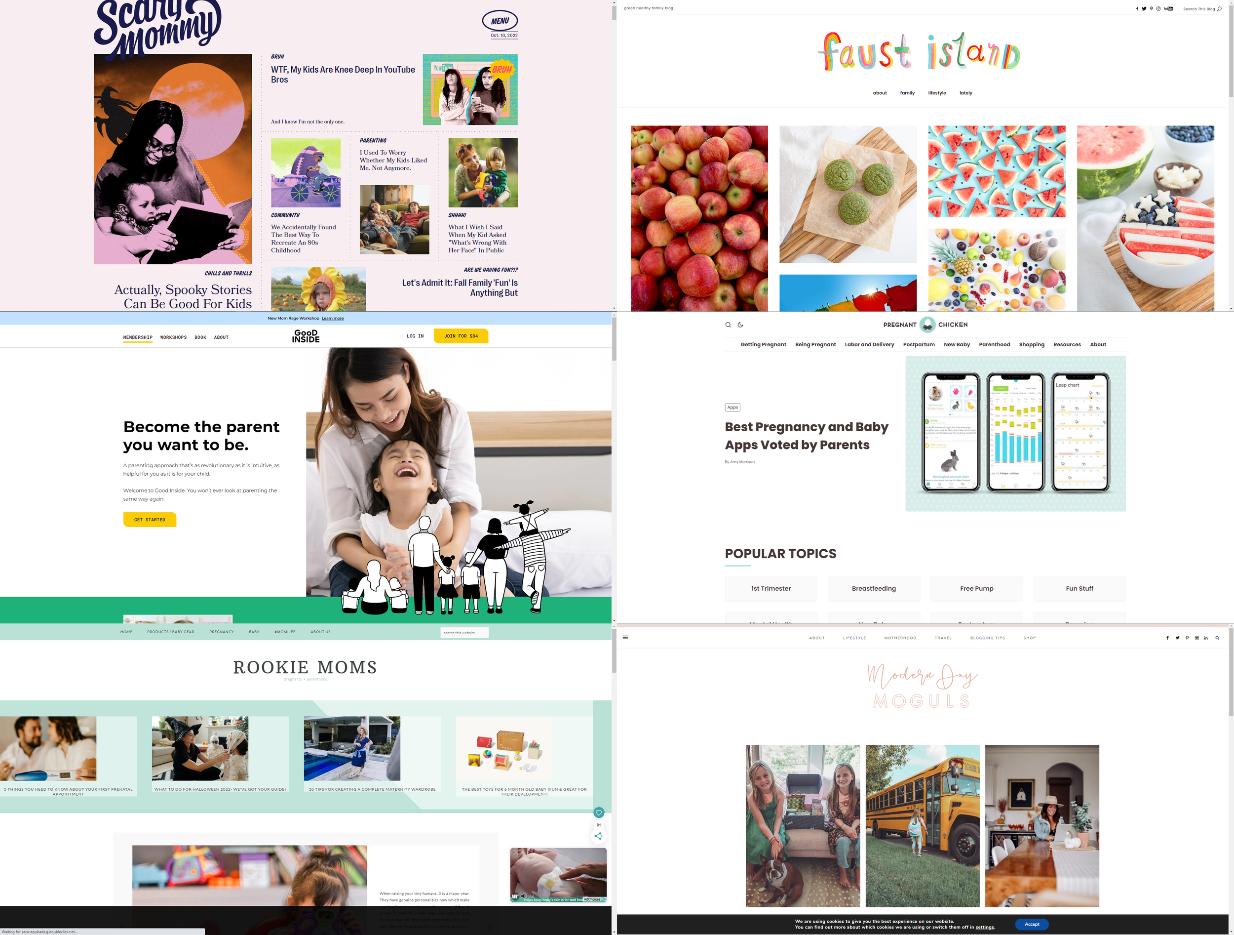 To better understand the market the client is in, I searched through countless family and child-oriented blogs to better understand the overall tone and information hierarchy. This allowed me to compare UX/UI design across multiple platforms to confidently determine areas of improvement.